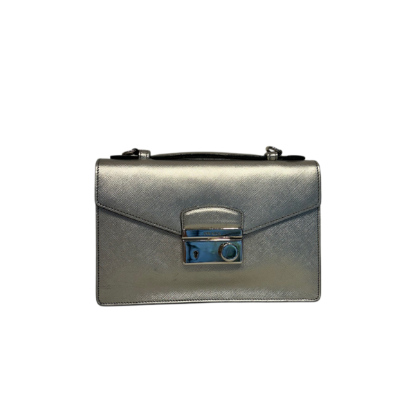 PRADA Metallic Saffiano Silver Crossbody Bag