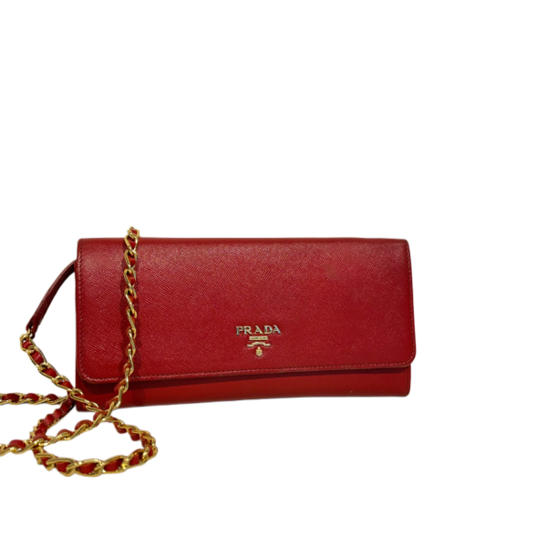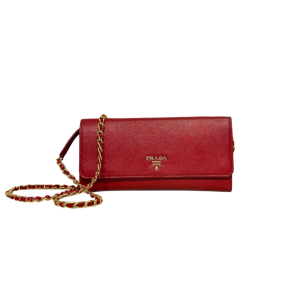 PRADA Saffiano Leather WOC Crossbody Red