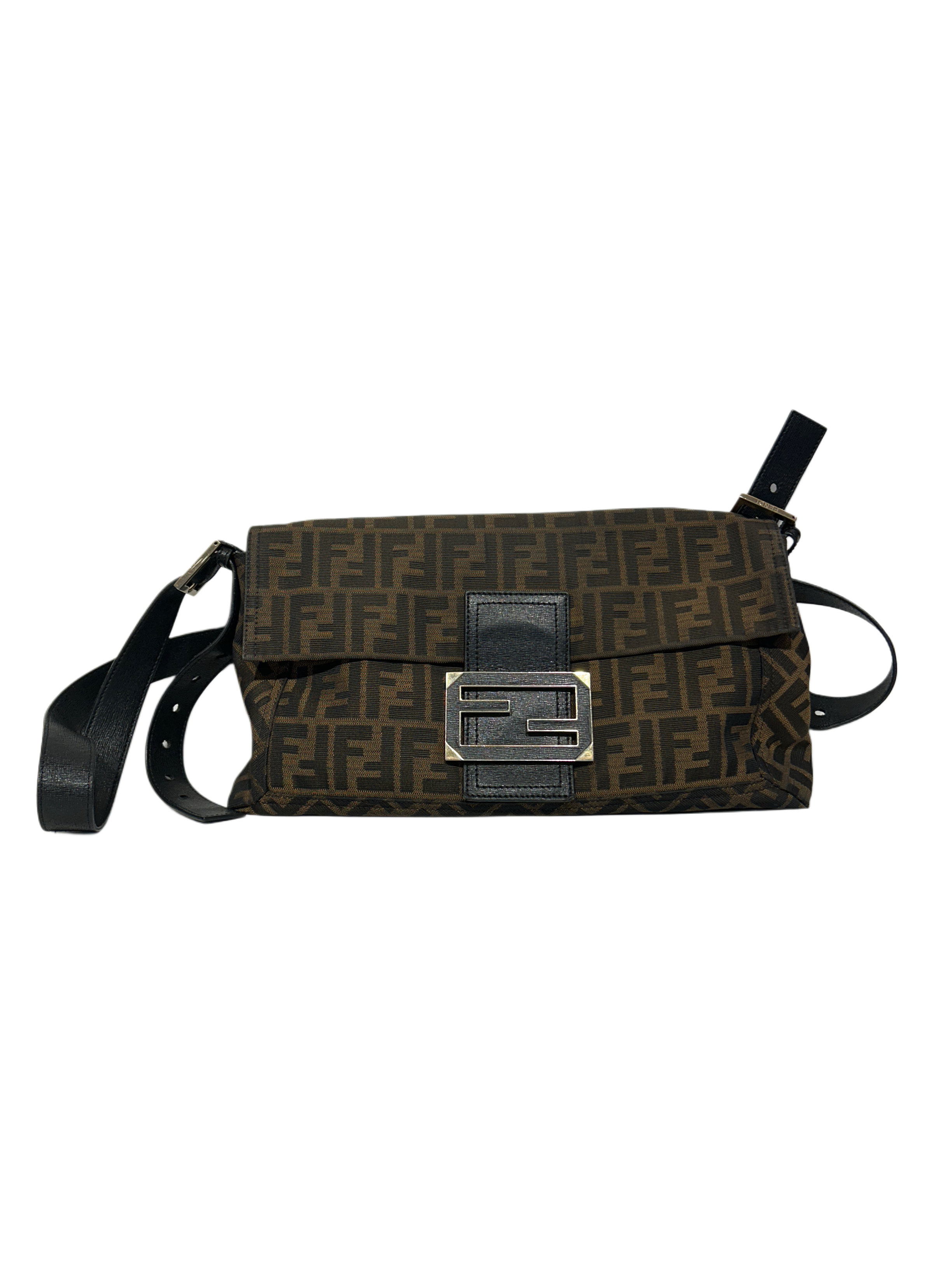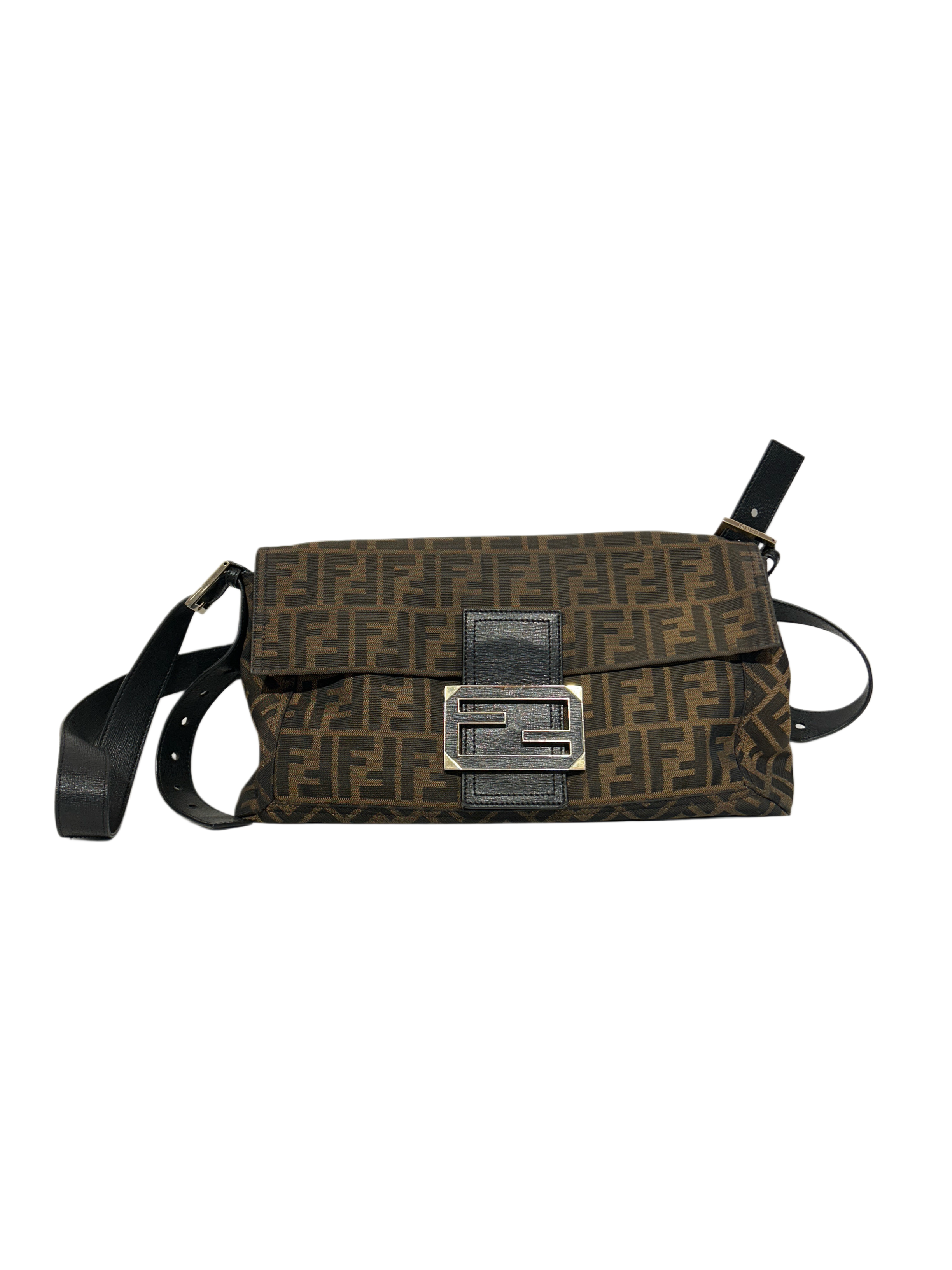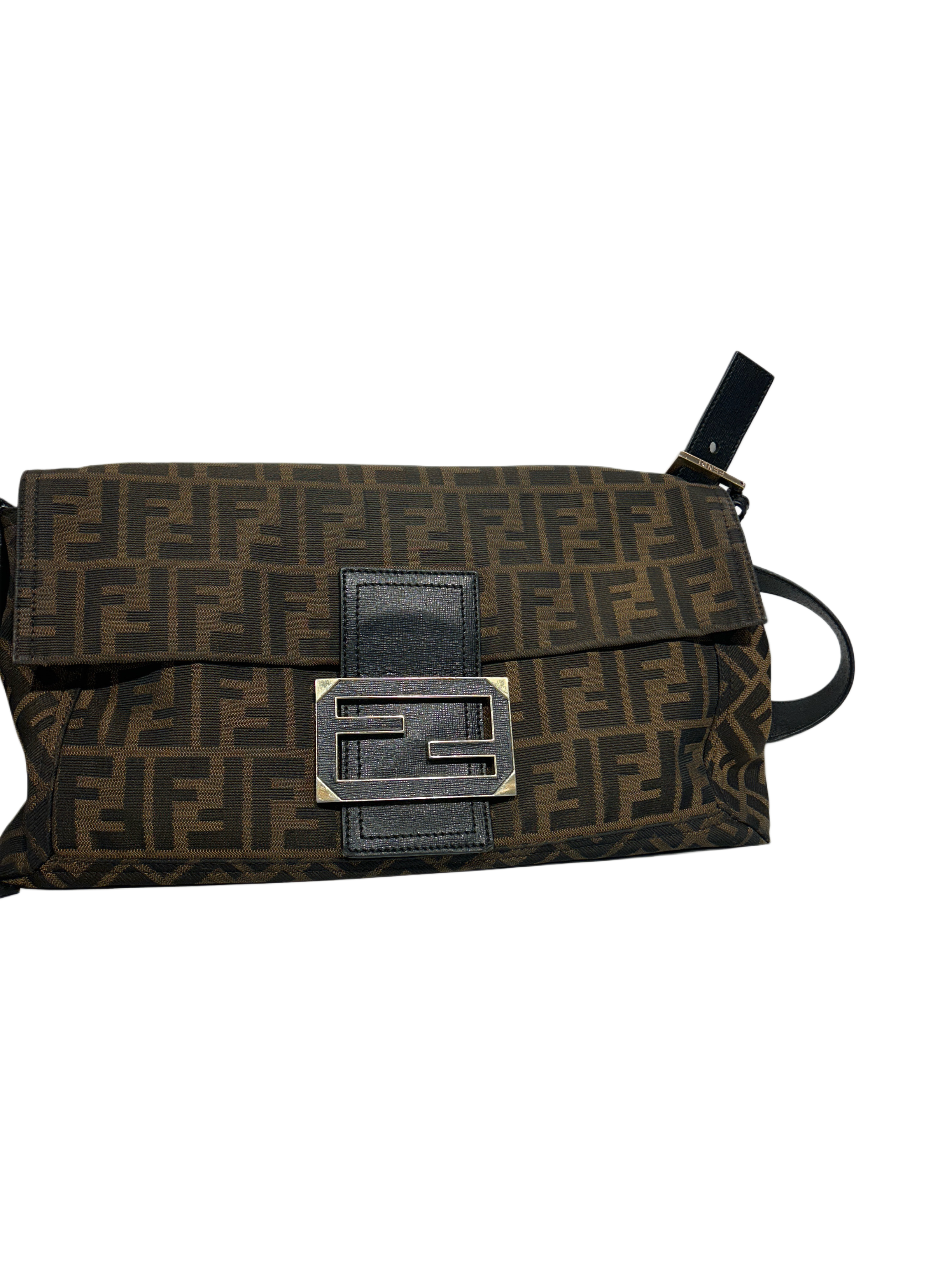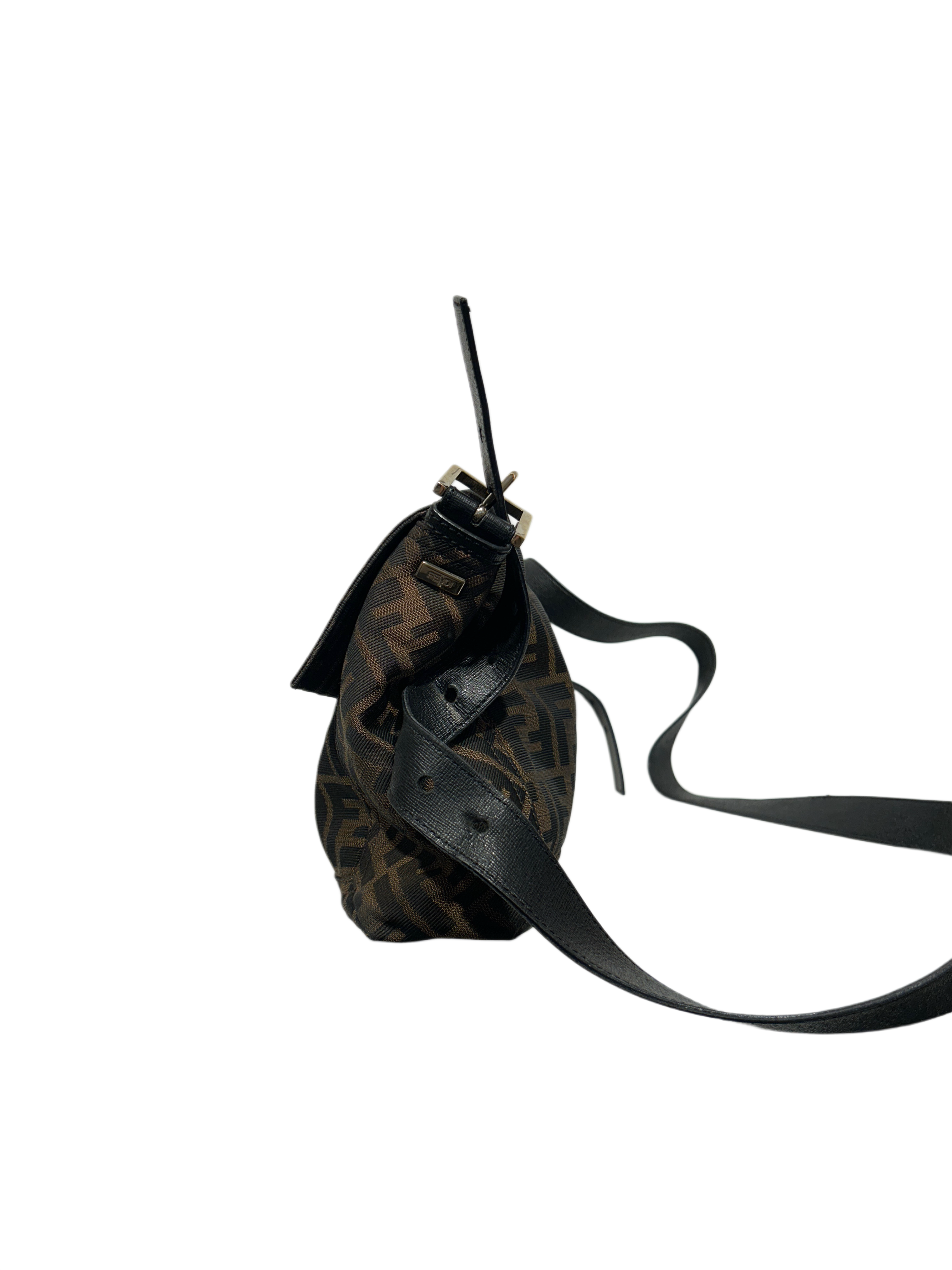 FENDI Mama Baguette Zucca Canvas Brown Crossbody Bag