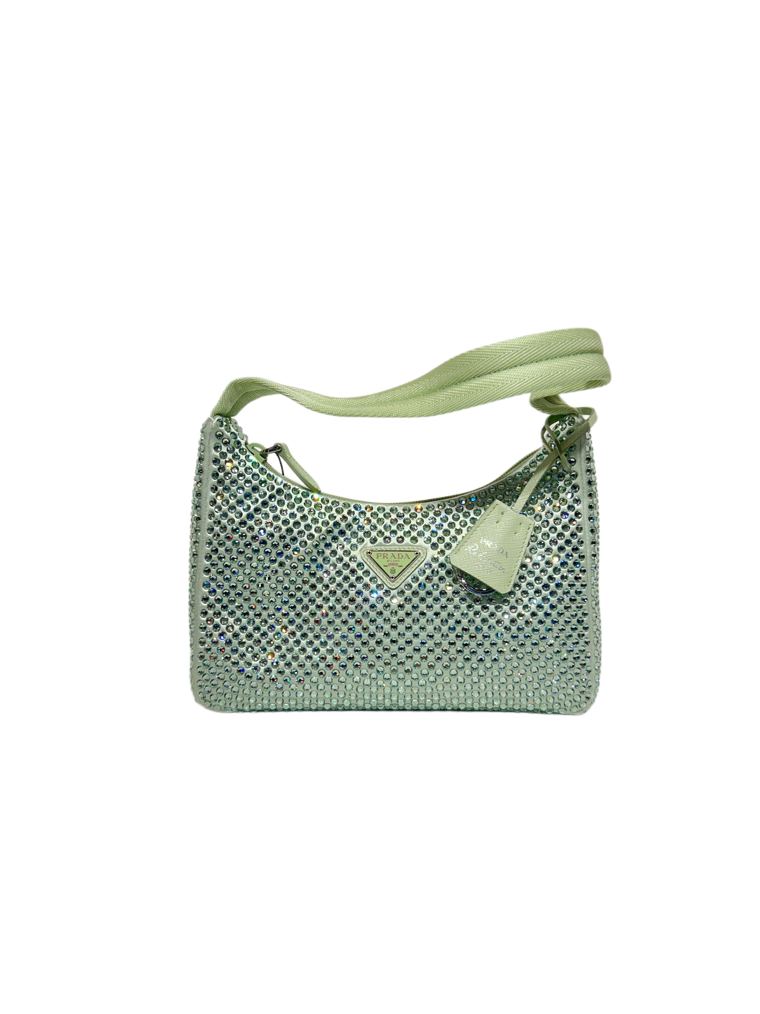 PRADA Satin Crystal Re-Edition 2000 Shoulder Bag Acqua